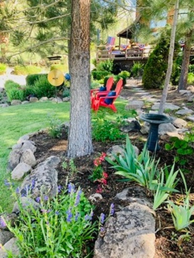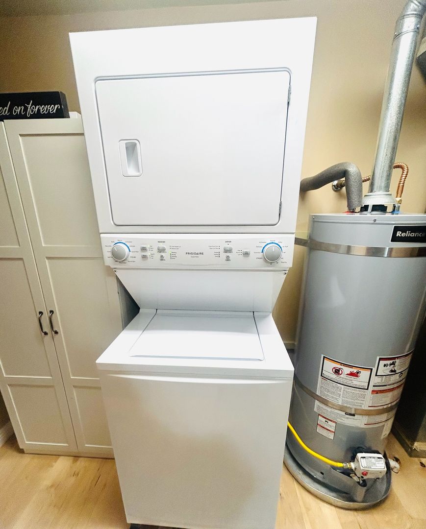 The bedrooms are thoughtfully designed, including a stunning primary suite with vaulted ceilings and a serene, retreat-like feel. Bathrooms have been updated for comfort and convenience, and the home also includes an in-unit washer and dryer.